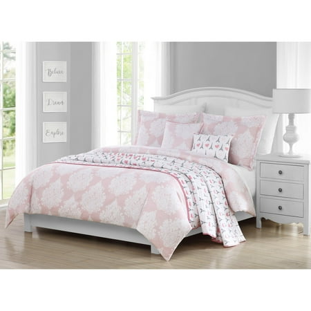This pink perfection comforter set in damask has a posh and classic pattern with a flirty twist of pink.